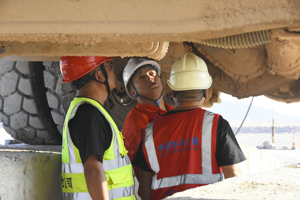 桁架的影子渐渐缩短,太阳升高,安全员毛泽伟从破碎硐室走出,赶往下一个巡查点。在前辈的带领下,他已熟悉现场安全工作的每道流程。安全帽下,头发早已湿透。